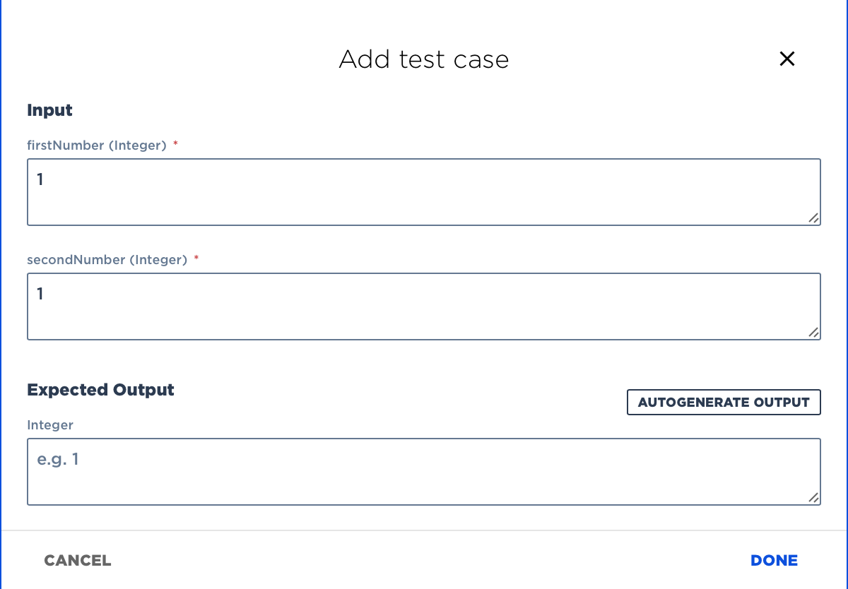 You might come up with a few examples that you know you want to test, such as inputs that are negative or include leading 0s. If you’ve already written the author solution, when you go to create your test cases, you can simply provide these inputs and click Autogenerate Output. That way, you don’t have to worry about writing the output yourself (and potentially making a mistake).
