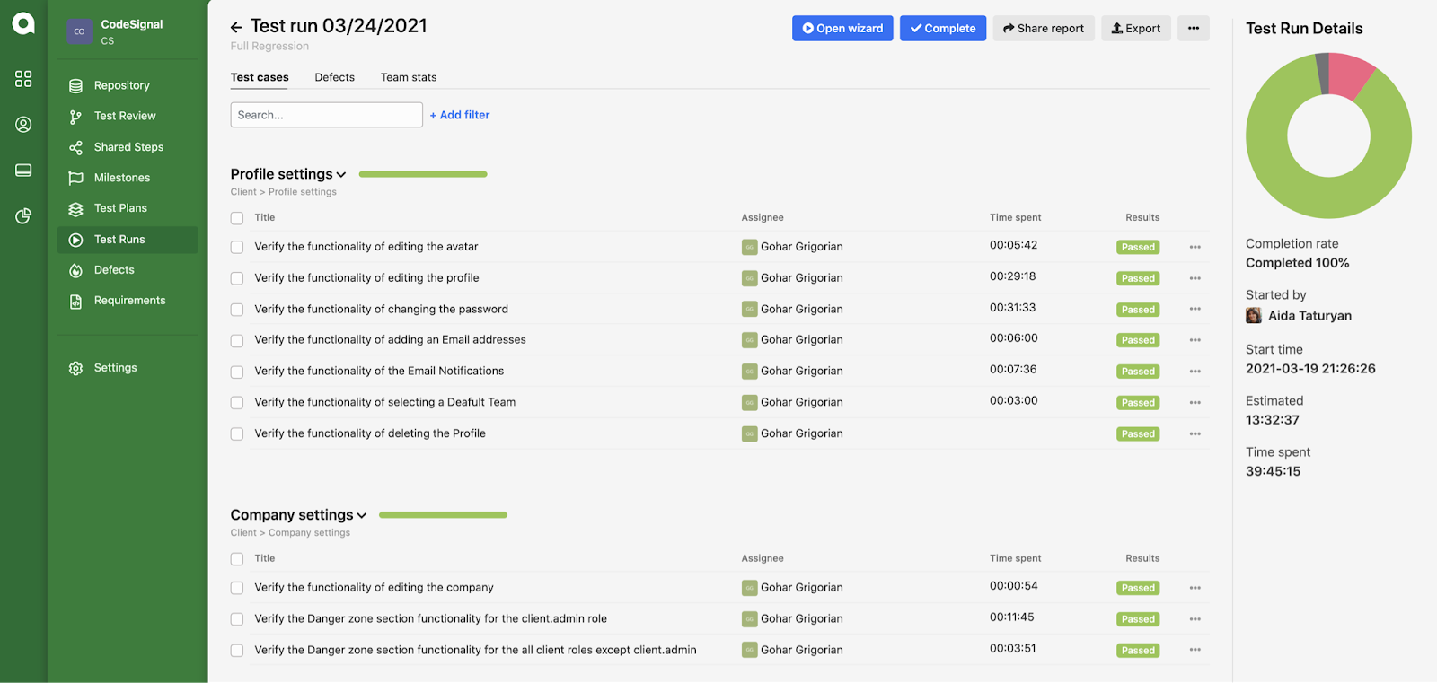We perform a mix of automated and manual end-to-end testing and use Qase to manage our test cases. Qase helps us organize our daily work around a test plan, track what is tested and what needs to be tested, and notice where we’re finding issues in the product. Having all the test cases in one place also helps us prioritize the scenarios that we should try to automate in the future.